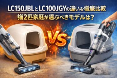 LC150JBLとLC100JGYの違いは結論から言うと、両モデルの吸引性能は同じで、最大の違いは自動ゴミ収集ドックの有無です。この記事では、価格・機能・猫の抜け毛や鉱物系猫砂への対応力まで徹底比較し、あなたの家庭に本当に合うモデルをわかり...